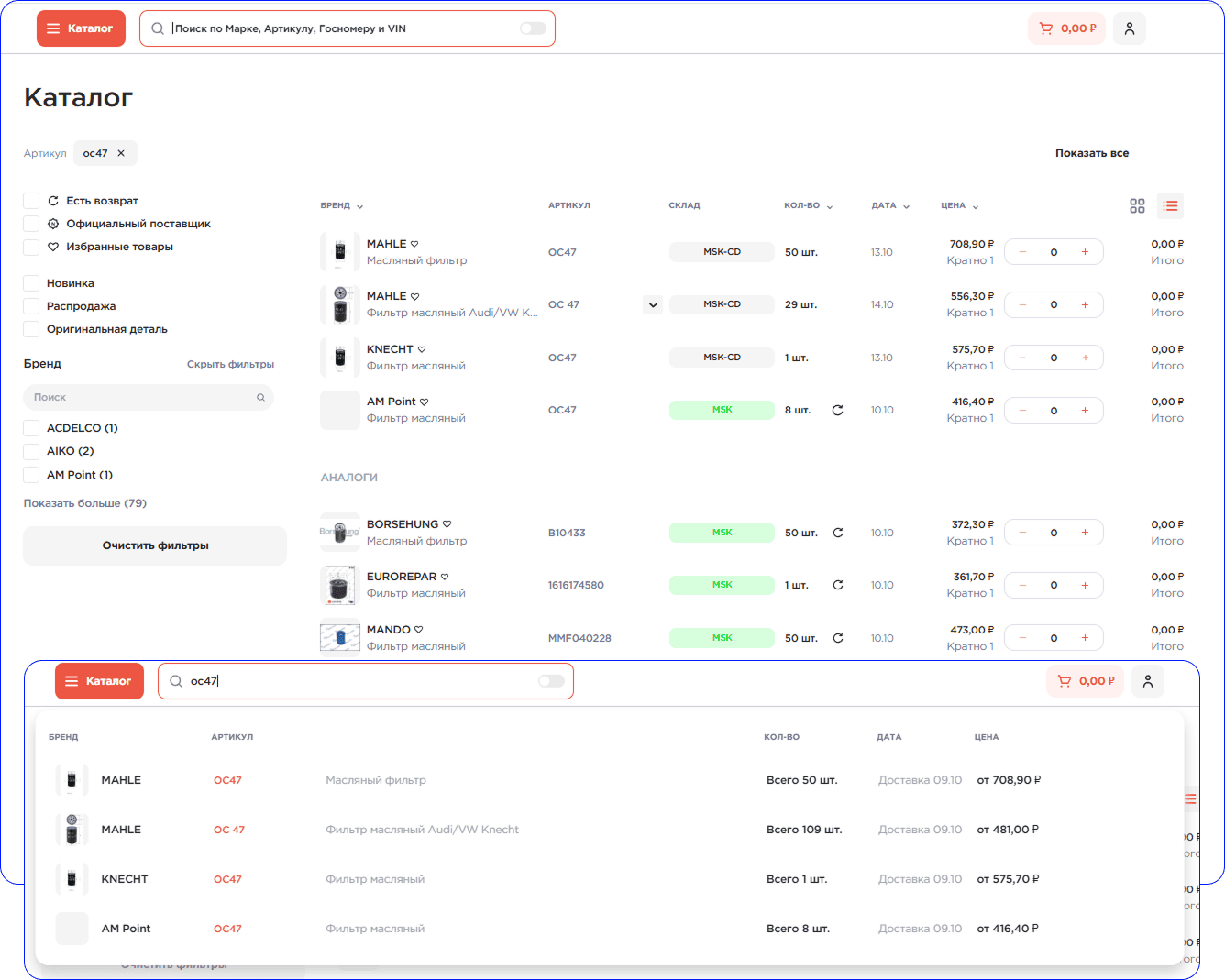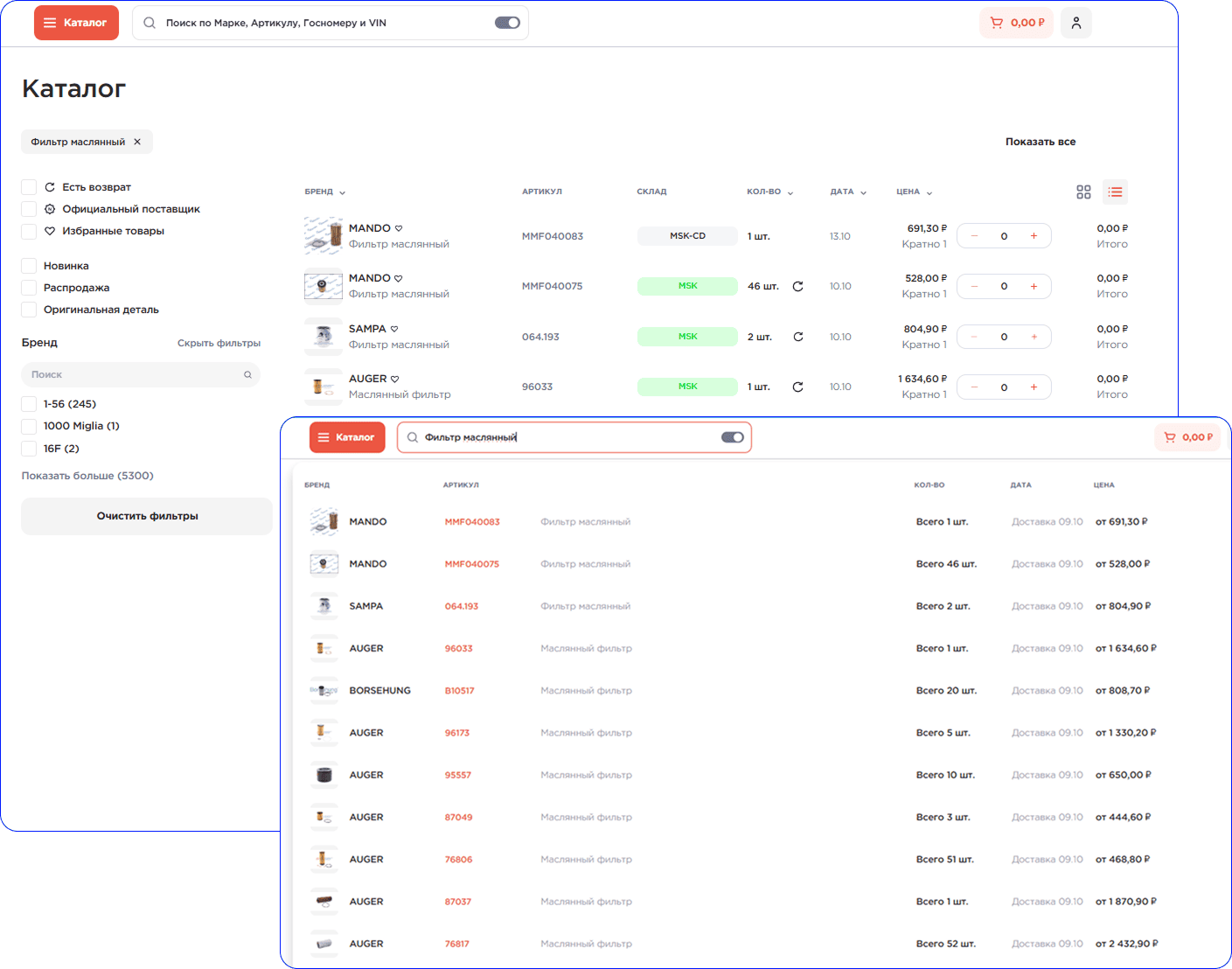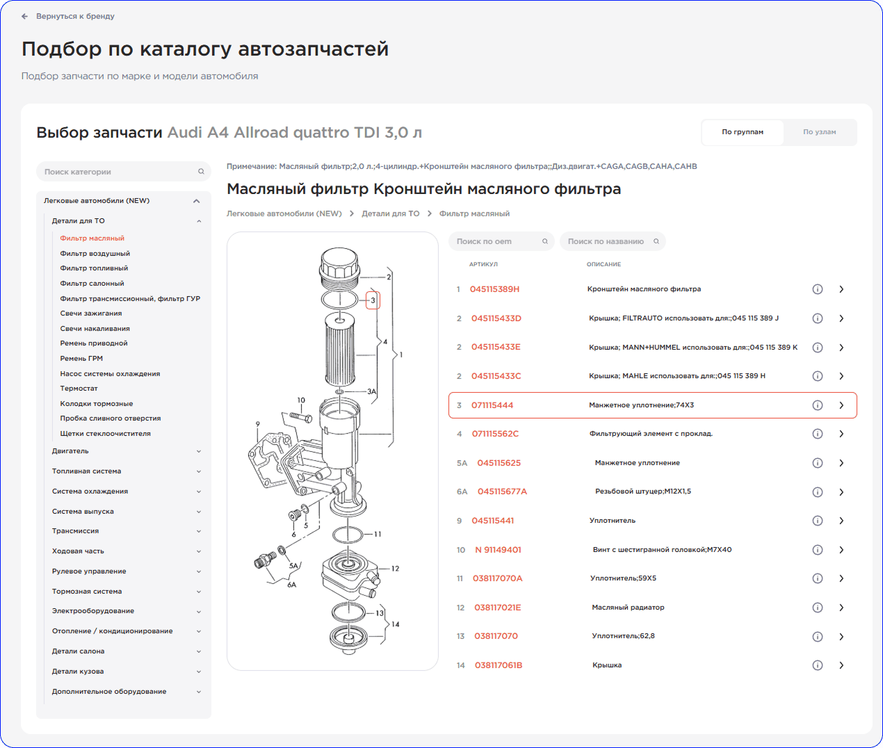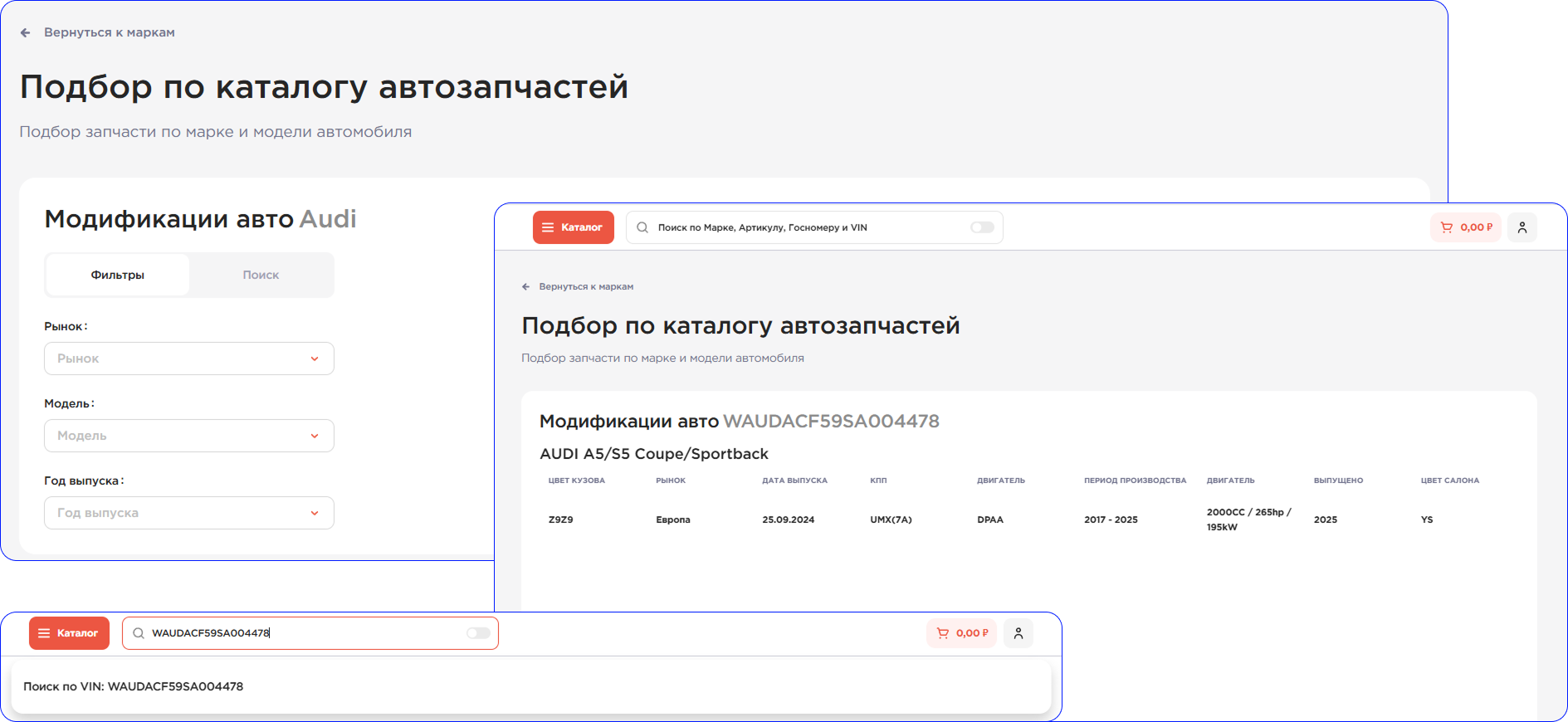 Пользователи получают понятный инструмент, который помогает найти нужную деталь по любому параметру — от марки и модели до VIN или OEM.