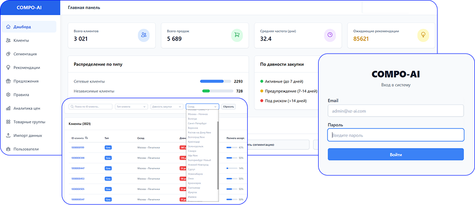 Модуль рекомендательной системы Компо Софт — решение, которое автоматически формирует персональные предложения для клиентов на основе их поведения, истории закупок и бизнес-правил компании.