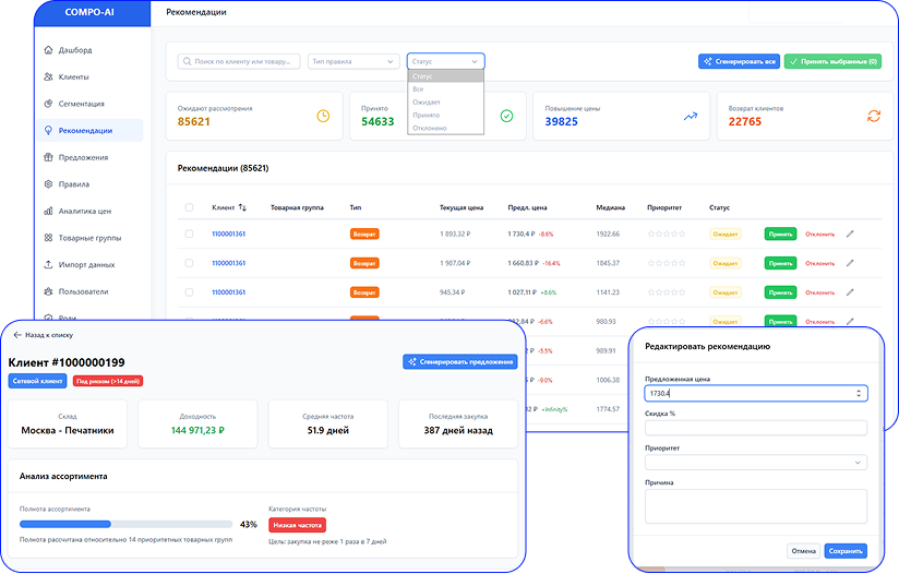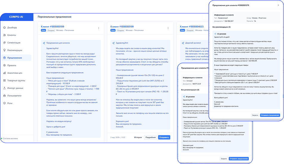 Рекомендательная система Компо Софт — это инструмент, который автоматически формирует персональные предложения для клиентов