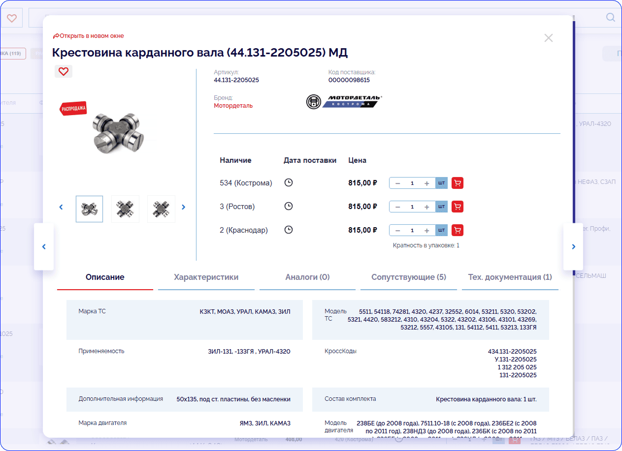 - поддержка аналогов и сопутствующих товаров