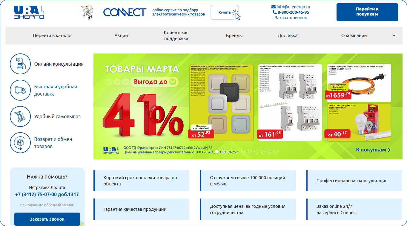 Одна из типичных категорий клиентов Уралэнерго — монтажные и подрядные организации, которые закупают электротехническое оборудование для строительных и инфраструктурных проектов.