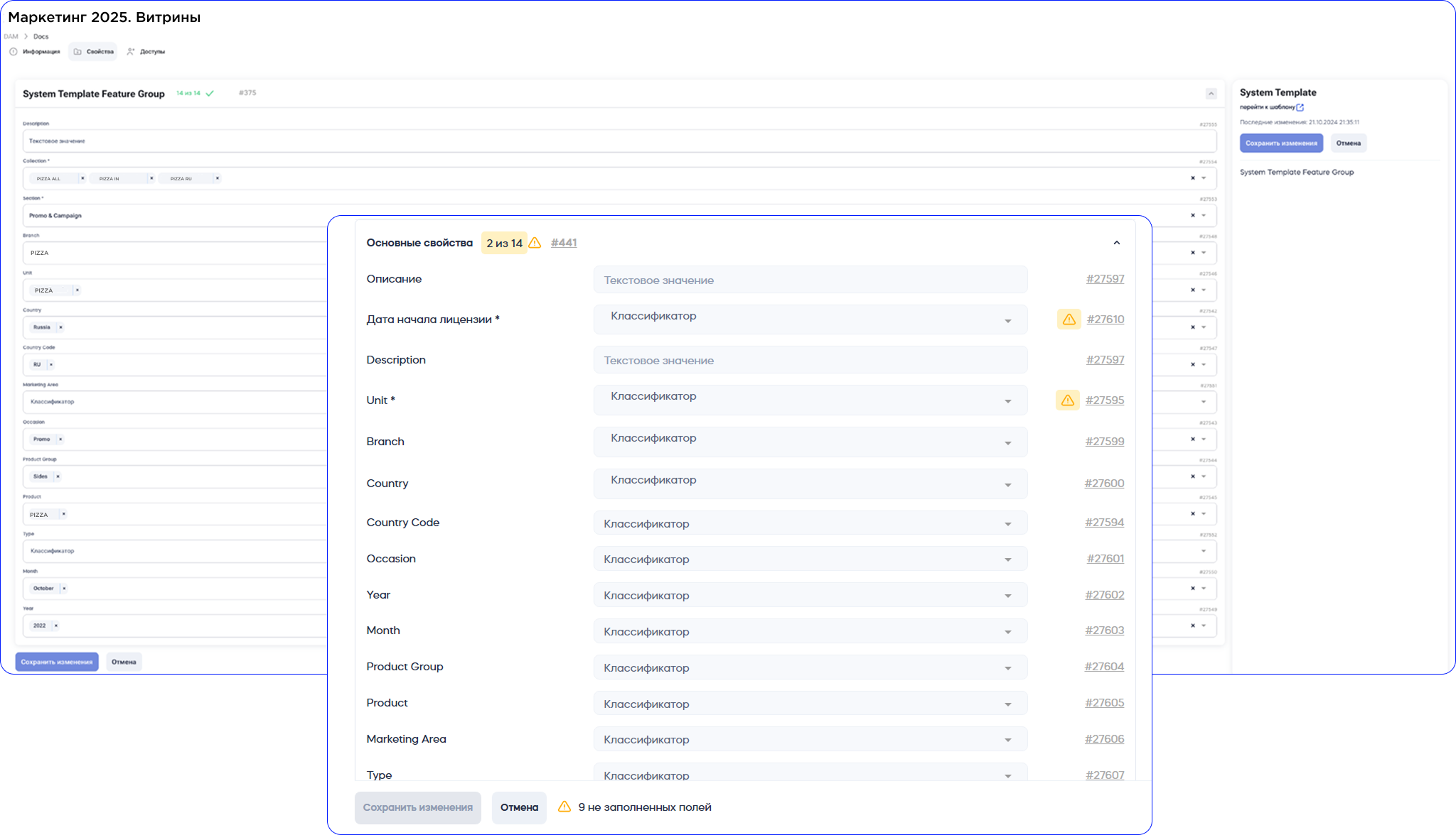 - «Свойства»: Предоставляет администраторам инструмент для настройки и управления кастомными атрибутами элемента.